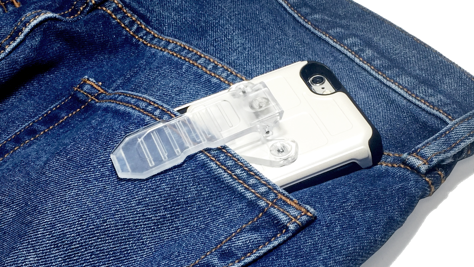 このクリップアタッチメントのすごいところは、iPhoneを装着した状態で着脱ができることです。